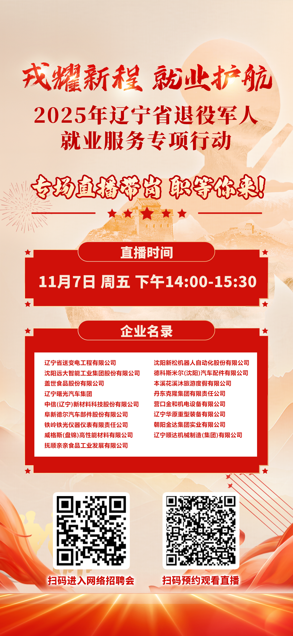 2025年辽宁省退役军人专场直播带岗 职等你来!
