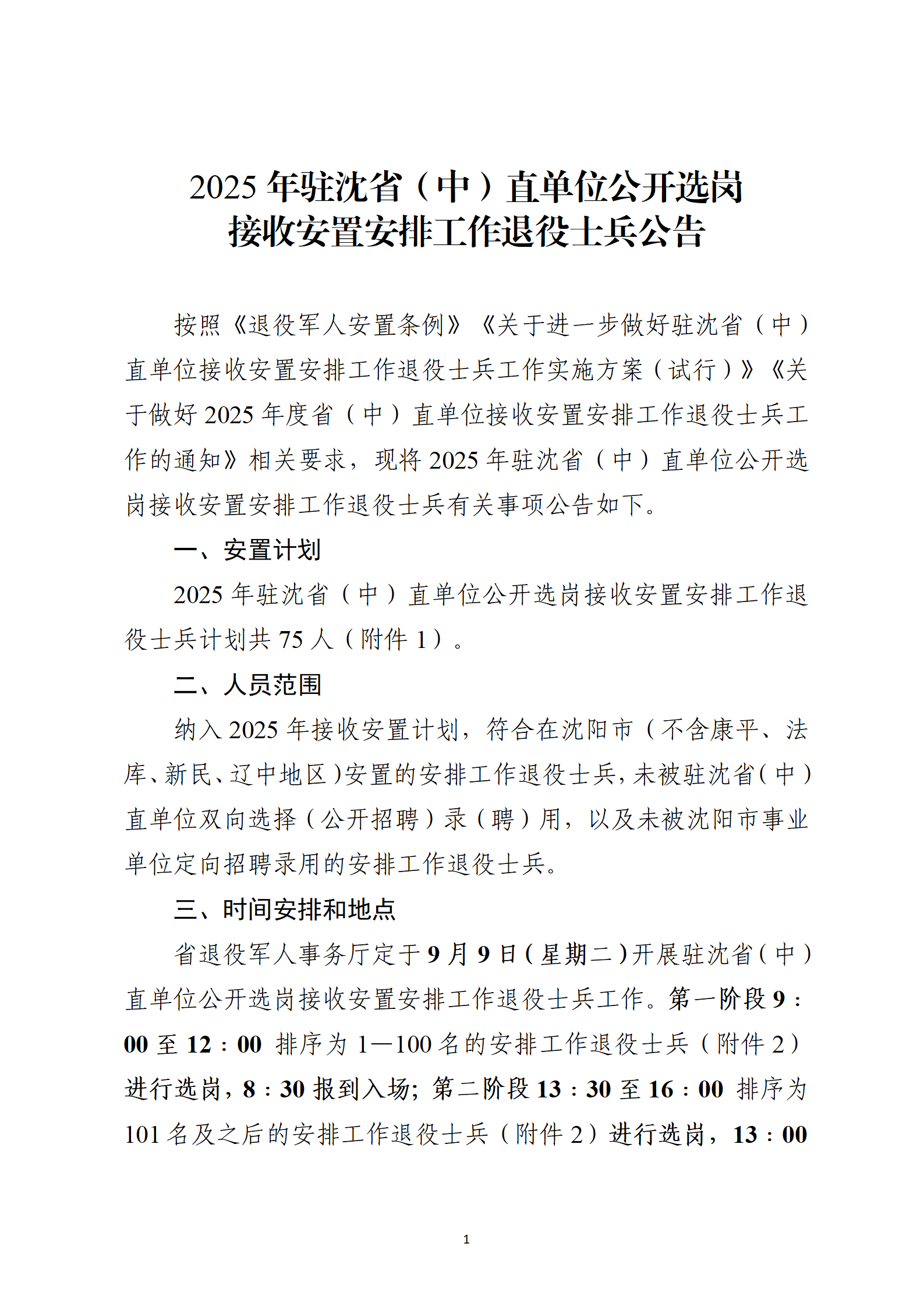 附件1:2025年驻沈省(中)直单位公开选岗接收安置安排工作退役士兵计划.pdf