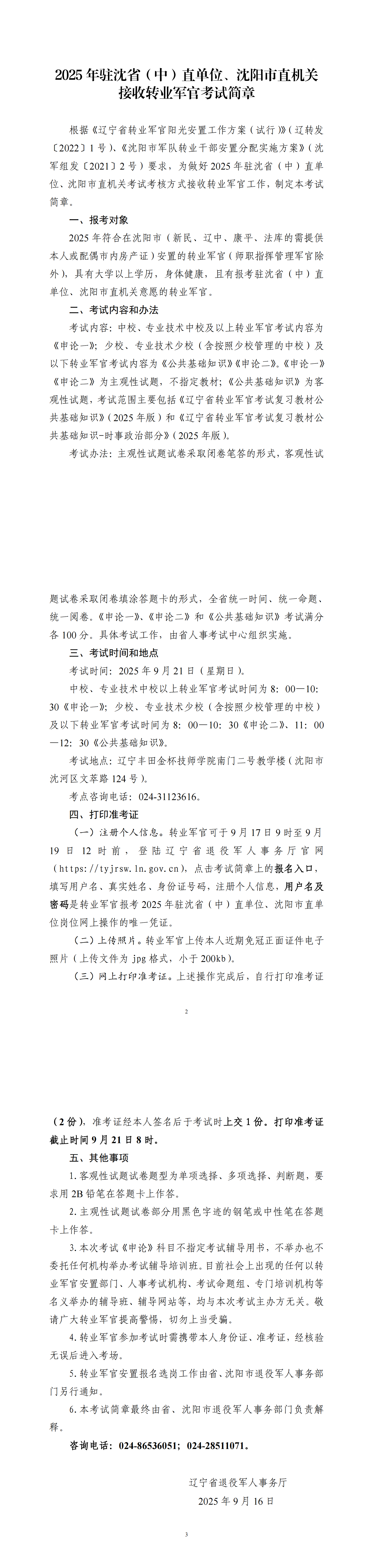 2025年驻沈省(中)直单位、沈阳市直机关接收转业军官考试简章
