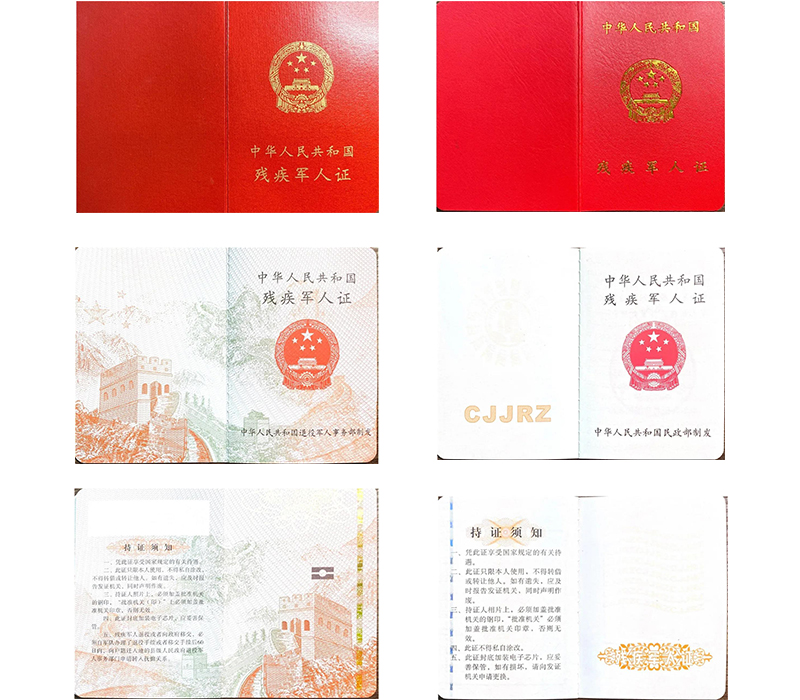 新版证件由退役军人事务部统一印制,使用更为环保的纸张制作,采用荧光纤维、固定水印、开窗式安全线等多种防伪技术,植入高频芯片写入残疾人员基本信息,整体提高了证件质量,能够更好保障相关对象优待待遇落实及合法权益维护。